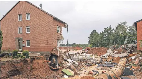 In blessem südwestlich von köln war es zu gewaltigen erdrutschen gekommen, es bildeten sich krater im erdreich, drei wohnhäuser legende:
